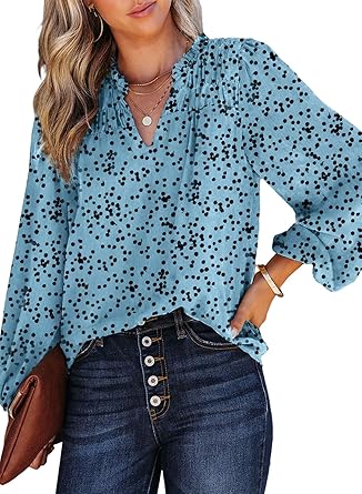 Features: Elegant Boho Shirt for Women, Sexy Casual V Neck Blouse, Relaxed Fit, Blouses for women fashion 2025, Womens Tops and Blouses, Long Sleeves with Elastic Cuffs, Cute Tops for Women Trendy, Alicia Flowy Print, Back Smocked, Business dressy work tops for women.