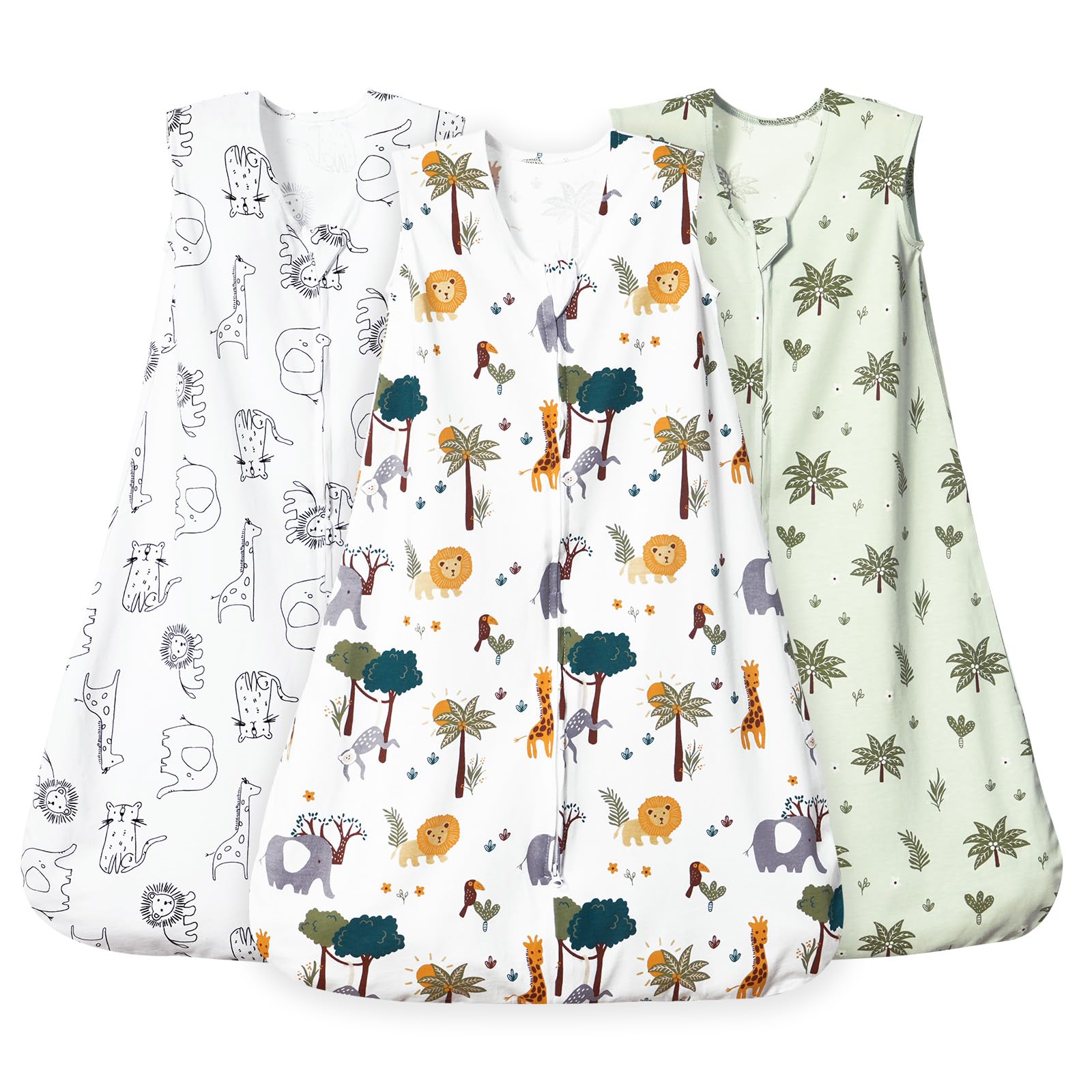 david’s kids 3 Pack 100% Cotton Baby Sleep Sack 0-6 Months, Soft Baby Wearable Blankets with 2-Way Zipper, Comfy Sleeping Bags for Infant Newborn Boys Girls Neutral, Small Size, Woodland Animals