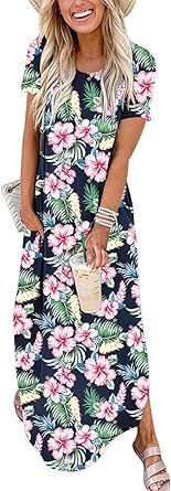 ANRABESS Womens Summer Maxi Dress Short Sleeve