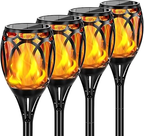 🔥DANCING FLICKERING FLAME: Solar powered flashlights flicker with a brilliant dancing flame torch, a safe alternative to a real ‘flame’. Combine multiple flame LEDs together for a more perfect campfire atmosphere!