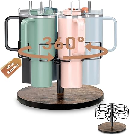 【6 Cup Slots 360° Rotation】The tumbler organizer has a unique rotatable design with 6 cup slots. Whether you store it in a cupboard or on your kitchen counter, this tumbler lazy susan ensures quick and easy access to your favorite cups