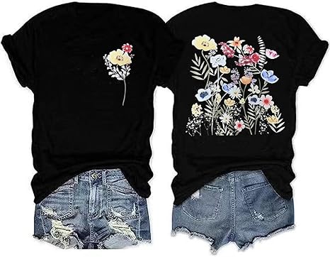 Design:Women’s Vintage Flowers Shirt Casual Boho Cottagecore Pastel Botanical Floral Printed T-Shirt Wildflowers Graphic Tees. Unique and cute design, daisy, dandelion, sunflowe, wildflower decorations, cute aesthetic tops. Short sleeves, cool and fashionable. Flower shirts for women is simple but energetic, show your charm.