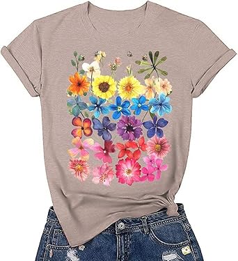 Design:Women’s Vintage Flowers Shirt Casual Boho Cottagecore Pastel Botanical Floral Printed T-Shirt Wildflowers Graphic Tees. Unique and cute design, daisy, dandelion, sunflowe, wildflower decorations, cute aesthetic tops. Short sleeves, cool and fashionable. Flower shirts for women is simple but energetic, show your charm.